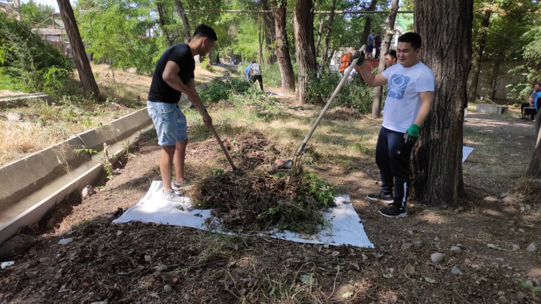 Дем алыш күндөрү бишкектиктер шаарды салттуу тазалоо иштерине чыгышты.