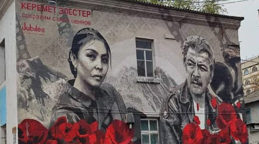 Бишкектеги турак үйдүн сырткы дубалына атактуу кинорежиссер, Кыргызстандын Эл артисти Болотбек Шамшиев менен анын мурдагы жубайы, актриса, Кыргызстандын Эл артисти Айтурган Темированын сүрөтү тартылды. Бул тууралуу мэриядан билдиришти.