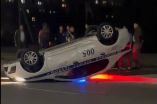 Бишкекте Милициянын кайгуул кызматы башкармалыгынын кызматтык унаасы жол кырсыгына кабылып, оодарылып кетти.