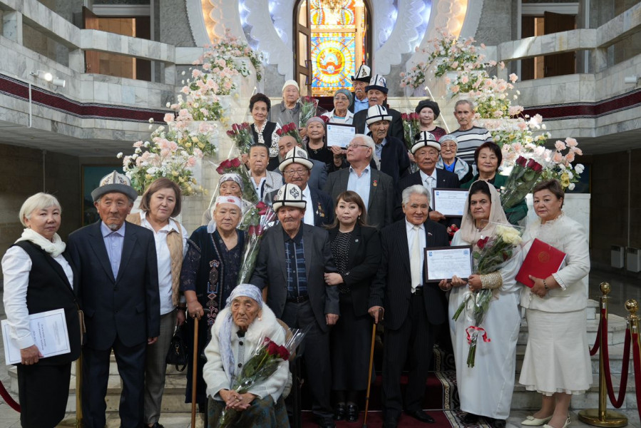 Иш-чара эл аралык карылар күнүн белгилөөнүн алдында уюштурулуп, Бакыт ордосунда бриллиант, изумруд жана алтын үйлөнүү тоюн белгилеп жаткан жубайлар маараке белгилешти.