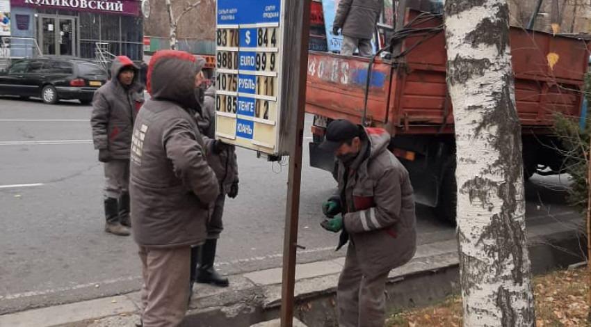 Маалыматка ылайык, атайын бөлүм Сүйөркулов, Горький көчөлөрүн жана Чүй кең көчөсүн кыдырып, 99 жарнама конструкциясын демонтаждады.