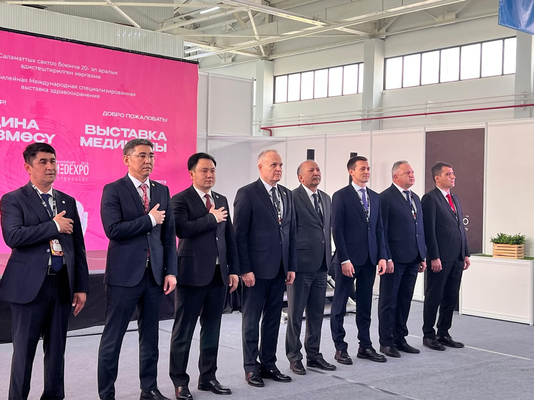 2026-жылдын 31-мартында Бишкекте саламаттык сактоо тармагындагы 20-жолу өткөрүлүп жаткан юбилейлик эл аралык адистештирилген MedExpo Kyrgyzstan 2026 көргөзмөсүнүн ачылышы болуп өттү.