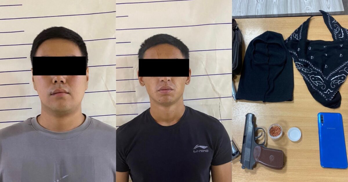 Милициядан билдиришкендей, кармалгандардан пневматикалык тапанча, каракталган телефон жана беткаптар табылып алынган.