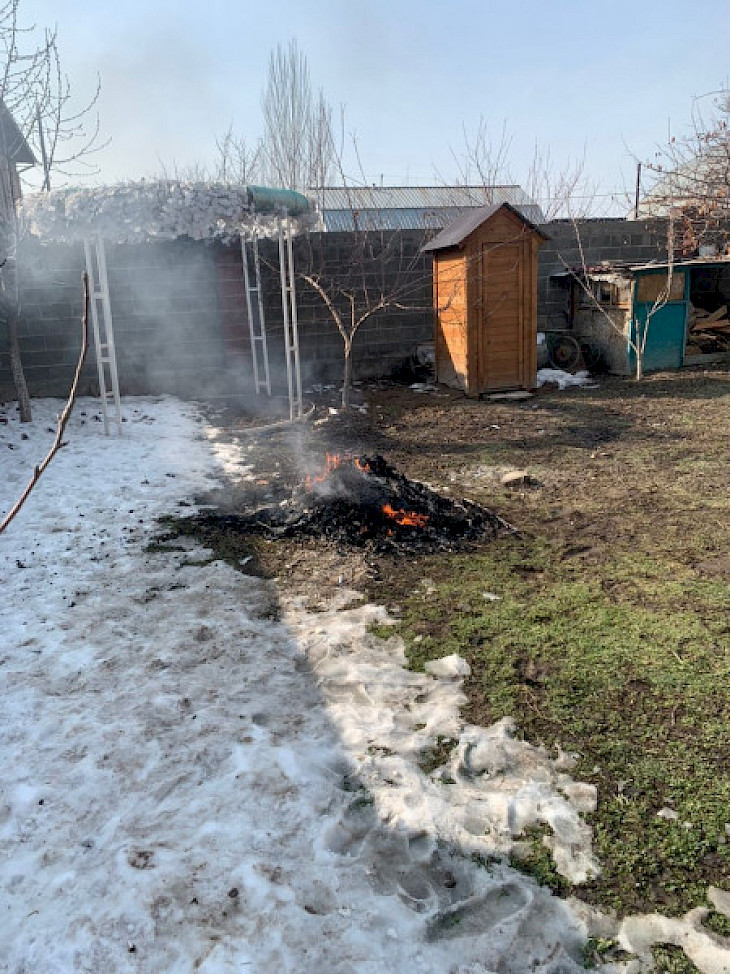 Анда Н.А. аттуу жаран тыюу салынган заттарды, туш кагаздарын, жана башка курулуш материалдарынын калдыктарын өрттөгөнү аныкталды. Ага карата КР "Укук бузуулар жөнүндө" кодексинин 115-беренесинин 3-бөлүгү менен протокол түзүлүп, 7500 сом айыппул салынды.