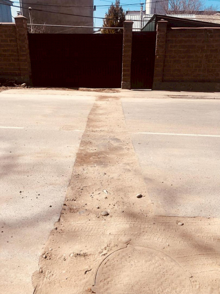 Жогоруда аталган фактыны текшерүү маалында шаар тургуну жол тилкесине жана жөө адамдар басуучу тилкеге төшөлгөн асфальтты бузганы аныкталды. Ошондой эле инженердик тармактарга кошуу боюнча иштер мыйзам бузуу менен уруксат алынбастан жүргүзүлгөнү белгилүү болду. Казылган чуңкурга (чуңкурдун туурасы 0,90м) суу жана канализация түтүгү салынган. Бул өз кезегинде курулуш нормалары жана эрежелерине каршы келет.