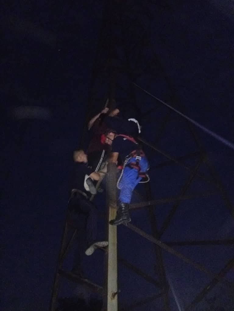 Жерине куткаруу иштерин жүргүзүүгө 5 куткаруучу тартылып, темир электр мамычадан кызды аман-эсен түшүрүп, ИИМ кызматкерлерине өткөрүп беришти.