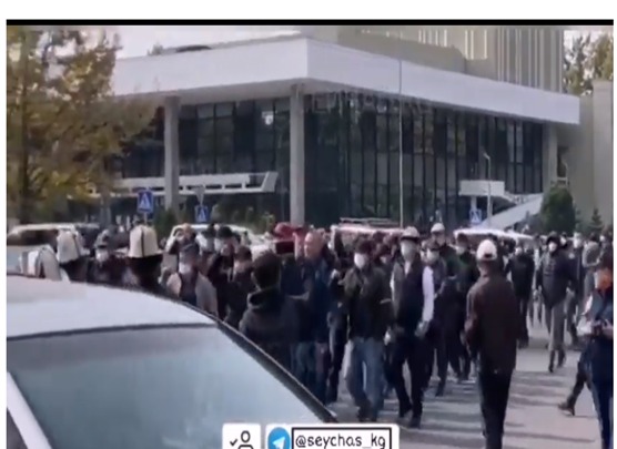 Бишкекте Жогорку Кеңештин экс-депутаты Садыр Жапаровдун тарапкерлери өкмөт үйүнө чогулушту. Митингчилер "Садыр" деп кыйкырып жатышат.