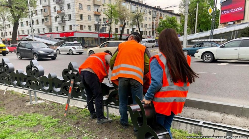 Бишкекте жол боюна кыргыздын улуттук оймо-чиймеси түрүндөгү тосмолор орнотула баштады. Бул демилге муниципалдык "Тазалык" ишканасына таандык.
