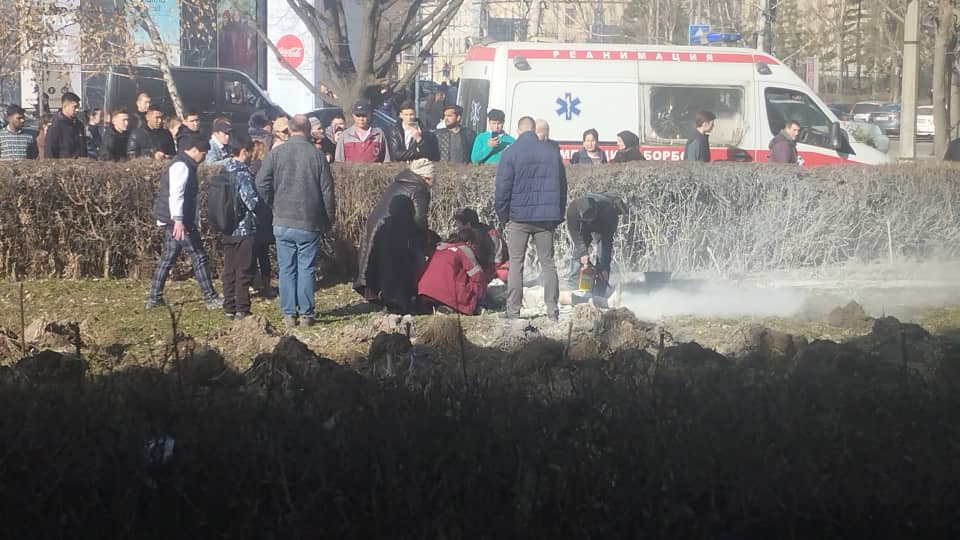 Алардын айтымында, бүгүн, 28-февралда саат 16:00 чамасында Киев жана Шопоков көчөлөрүнүн кесилишинде 40-45 жаштардагы Руслан аттуу адам өзүнө бензин чачкан. Андан кийин ал кийимдерин өрттөп жиберген.