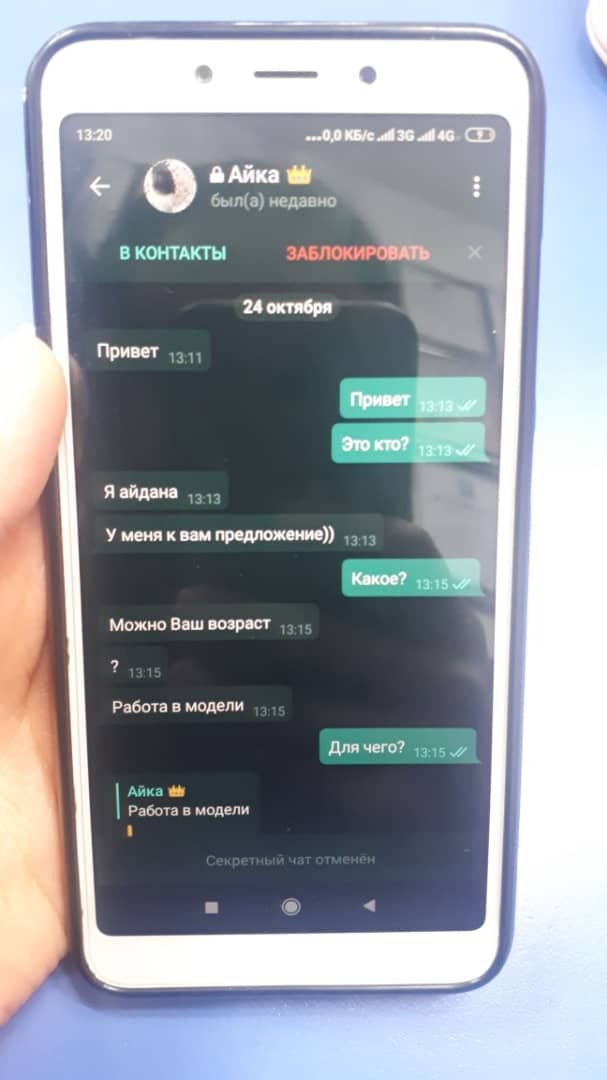 Дал ушул сыяктуу суроолор менен сөзгө тартып, Вотсапп, Телеграмм мессенжерлери аркылуу моделдик агенттиктерге чакырган “Айка” же “Аида” аттуу сулуулар пайда болуптур. Бул боюнча учурда бишкектиктер тынчсызданууда.