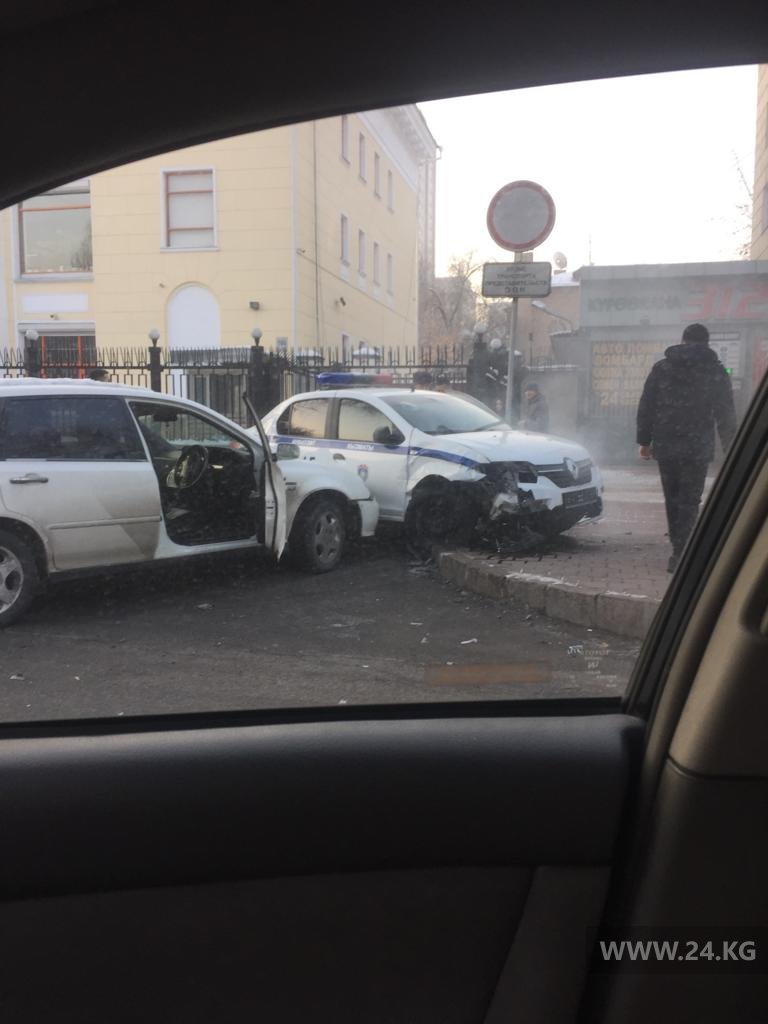 Хонданын 26 жаштагы айдоочусу Б.У. капысынан бурулуштан чыга калып, эки унаа кагышкан. Натыйжада, Рено үлгүсүндөгү патрулдук милициянын унаасындагы 2 кызматкер жабыркаган.