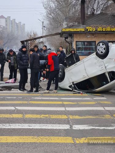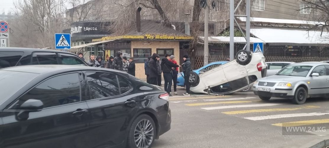 Бишкектин Сүйүнбаев жана Огонбаев көчөлөрүнүн кесилишинде үч унаанын катышуусунда жол кырсыгы катталды. Алардын бири катуу соккудан оодарылып кеткен. Бул тууралуу окуянын күбөлөрү билдирди.