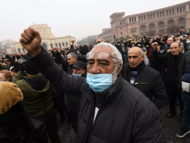 Армениянын жүзгө жакын жараны парламент имаратынын алдына чогулуп, Армения-Азербайжан чек арасында кырдаал курчуп кеткенден кийин премьер-министр Никол Пашиняндын кызматтан кетишин талап кылышууда. Бул тууралуу ТАСС билдирди.