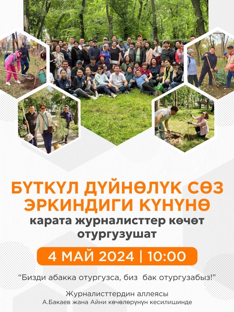 Бүткүл дүйнөлүк басма сөз эркиндигинин күнүнө карата Кыргызстандын Медиа Аракет Платформасы “Бизди абакка отургузса, биз бак отургузабыз” деген ураандын алдында тазалык акциясын өткөрөт.