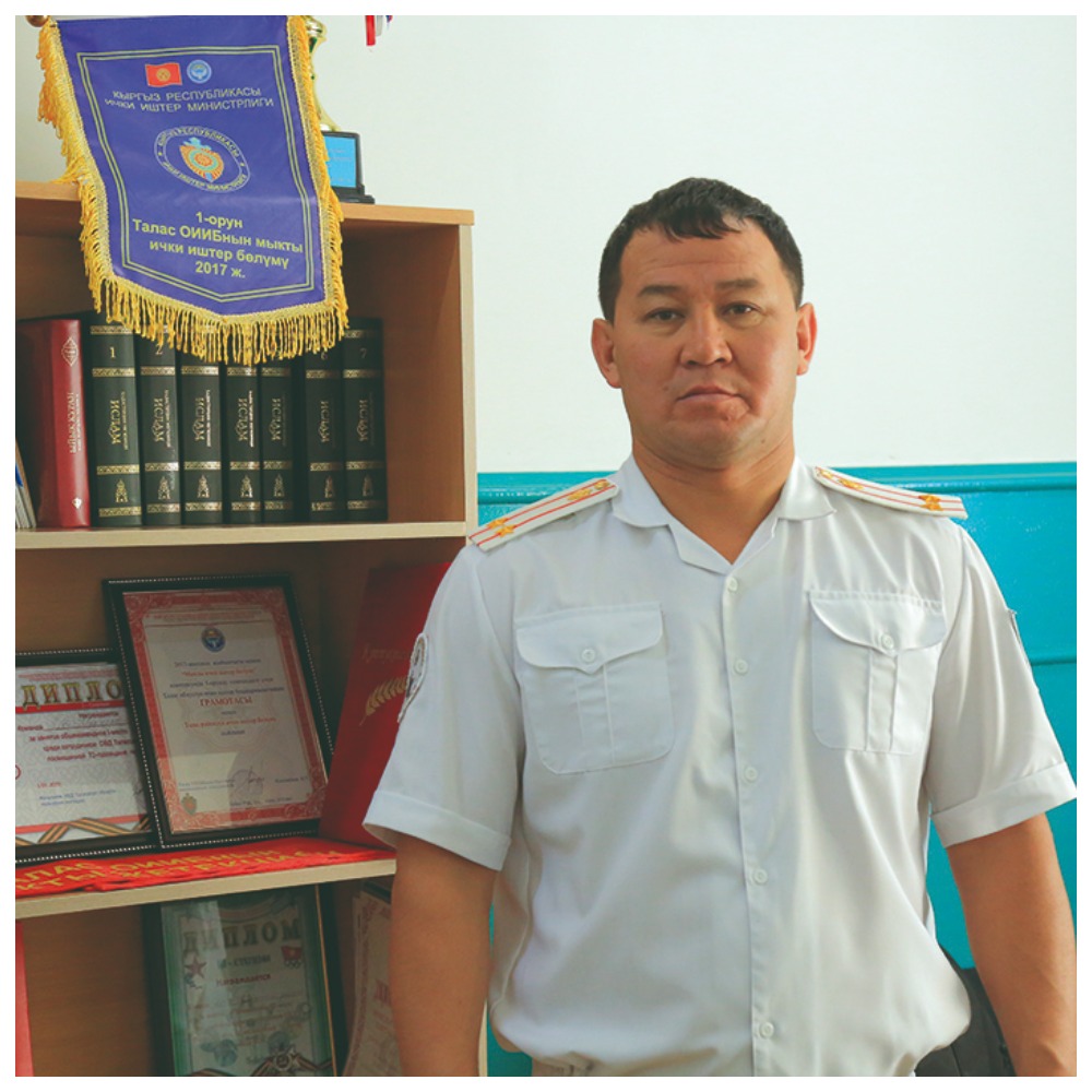 - Туура, милиция кызматкерлери бир-эки учурларда жаман көрүнүп калганыбыз ырас. Жашырганда эмне, кызматкерлерге кол көтөрүп, жаман сөз менен кыйкырып, мазактаган күндөр да болду. Чындыгында оор кырдаалдар өттү. Ошондой оор кырдаалда деле иштеп келдик. Азыр эми элдин түшүнүгү жогорулады. Мурункуга караганда элдин сыйы, мамилеси жакшы. Кызматкерлерге “Силер мамлекеттин күзгүсүсүңөр. Ага татыктуу болгула. Сакал-мурутуңарды алып, дайыма таза форма менен чыкыйып жүргүлө. Ошондо эл сыйлайт, сестенет. Билим деңгээлиңерди жогорулаткыла”-деп дайыма айтам.
