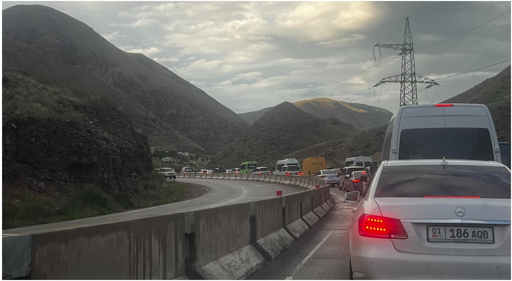 Бүгүн, 19-июлда Бишкек-Торугарт унаа жолунун Боом капчыгайынын так ортосунда жол кырсыгы катталды. Натыйжада жолдо чоң тыгын жаралган.