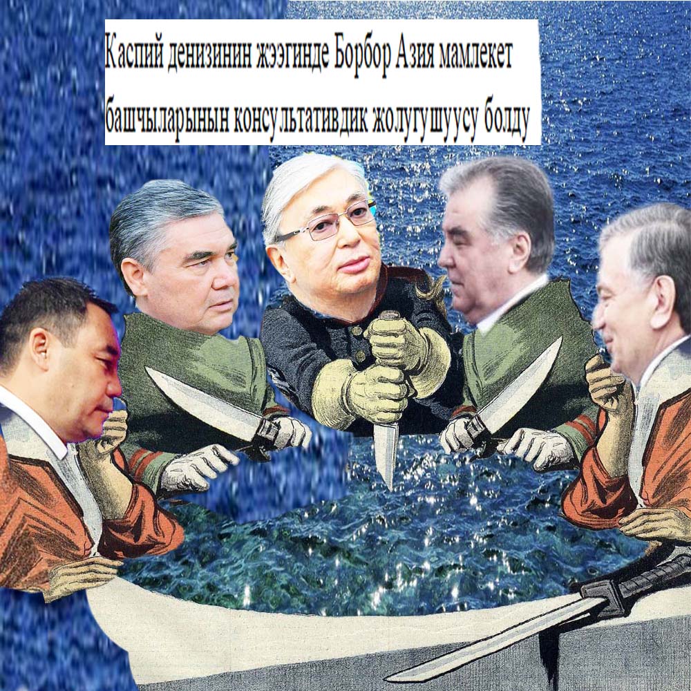 Президенттер деле эс алышат, иштешет. Борбор Азия лидерлеринин Каспий деңизин бойлой жүрүп түшкөн сүрөттөрү жер жайнап кетти. Биздин президент да Борбор Азия мамлекет башчыларынын консультативдик жолугушуусуна катышканы Түркмөнбашы шаарына барды. Карап көрсөк, Түркмөнстандан башка Казакстан, Өзбекстан жана Тажикстан менен чек аралаш болгондуктан алар менен эки тараптуу сүйлөшүүлөрдүн пайдасы оң тарапка чечилмекчи.