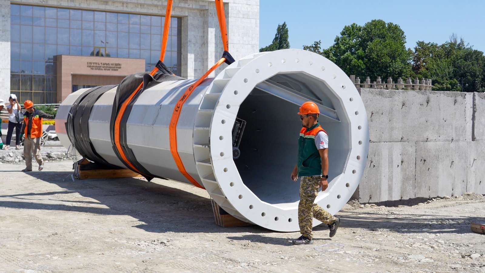 Учурда өлкөнүн башкы желеги үчүн флагштоктун айрым бөлүктөрүн түшүрүү иштери жүрүүдө.