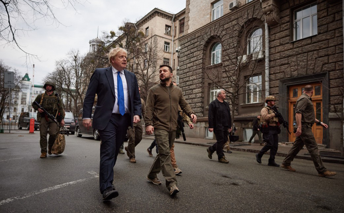 Улуу Британиянын премьер-министри 9-апрелде Украинанын президенти Владимир Зеленский менен жолугушуу үчүн Киевге Варшавадан поезд менен келип, ошол эле жол менен кеткен.