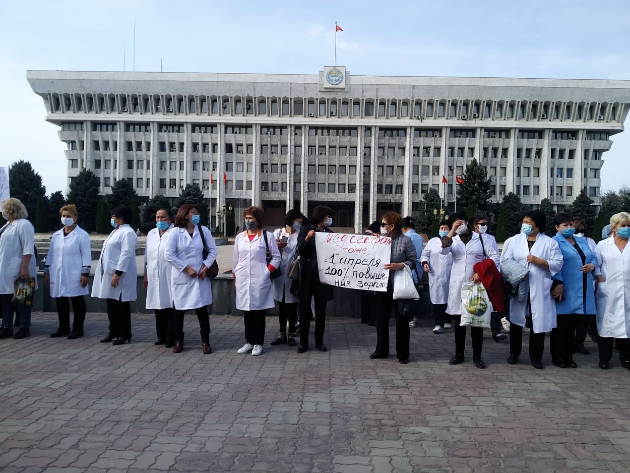 Эске салсак, 16-апрелде ондогон медицина кызматкери Ак үйдүн жана Өкмөт үйүнүн алдында акция өткөрүштү. Алар буга чейин кенемте төлөө жана маянаны жогорулатуу боюнча бийликтин убадаларынын аткарылышын талап кылышты. Митингчилерди биринчи вице-премьер Артём Новиков кабыл алган.