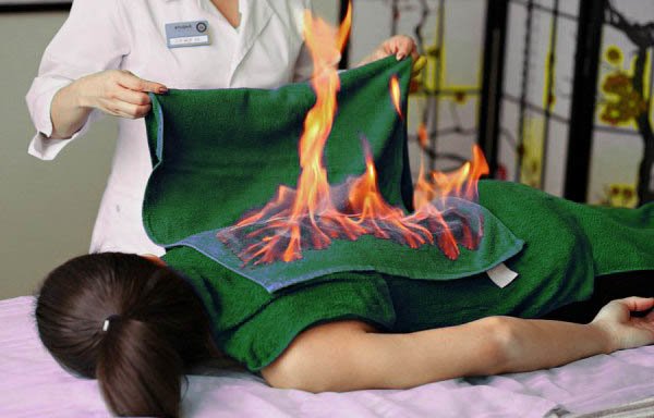 “Raut” сайтынын маалымдамасы боюнча, мындай массаж ашыкча салмак менен күрөшүүгө да өтө пайдалуу болуп табылган. “Отту массаж” кызматын сунуштагандар бул ыкманын эч кандай да кооптуулугу болбой турганын айтышат. Себеби эмдөө жолун окуган терапевтин карамагында болосуз. Атайы “элексирдин” таасиринен адам териси ысып чыгат, бирок күйүп кетпейт экен. Бул ыкманы жасаган учурда адамдын организмин өзгөртүүчү адреналин пайда болот. Ошондуктан анын башка да ооруларга каршы тура алган касиети бар болуп чыгууда.