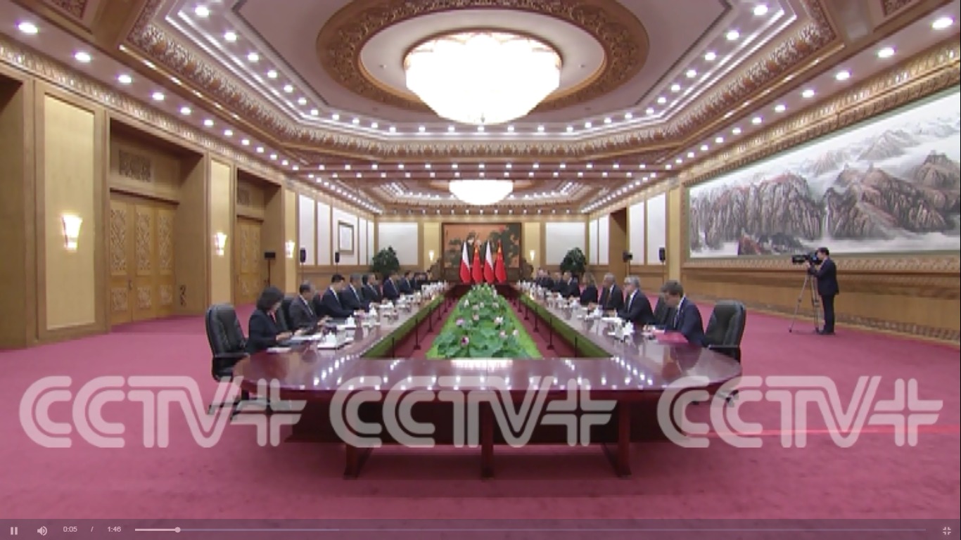 «Урматтуу президент, сиз кытай элинин байыртадан берки досусуз, ошондой эле менин көптөн берки досумсуз Кытай менен Польшанын ортосунда дипломатиялык мамилелердин орношуна 75 жыл толду. Андыктан, сиздин иш сапарыңызды өз убагында деп айтууга болот жана эки тараптын өз тажрыйбаларын жалпылоо жана биргелешип алдыга жылдыруу абдан маанилүү доордун жана тарыхый өзгөрүүлөр болуп көрбөгөндөй болуп жатат.«Кытай дипломатиялык мамилелерди орнотуу, салттуу достукту улантуу, эки тараптуу мамилелерди жогорку деңгээлге жылдыруу жана азыркы эл аралык кырдаалга көбүрөөк туруктуулук жана ишенимдүүлүк алып келүү боюнча баштапкы ниетине бек туруп, тынчтыкта жанаша жашоонун беш принцибин кармануу үчүн Польшага кошулууга даяр. Өзгөрүүлөр менен башаламандык чырмалышкан кырдаал», - деди Си Цзиньпин.