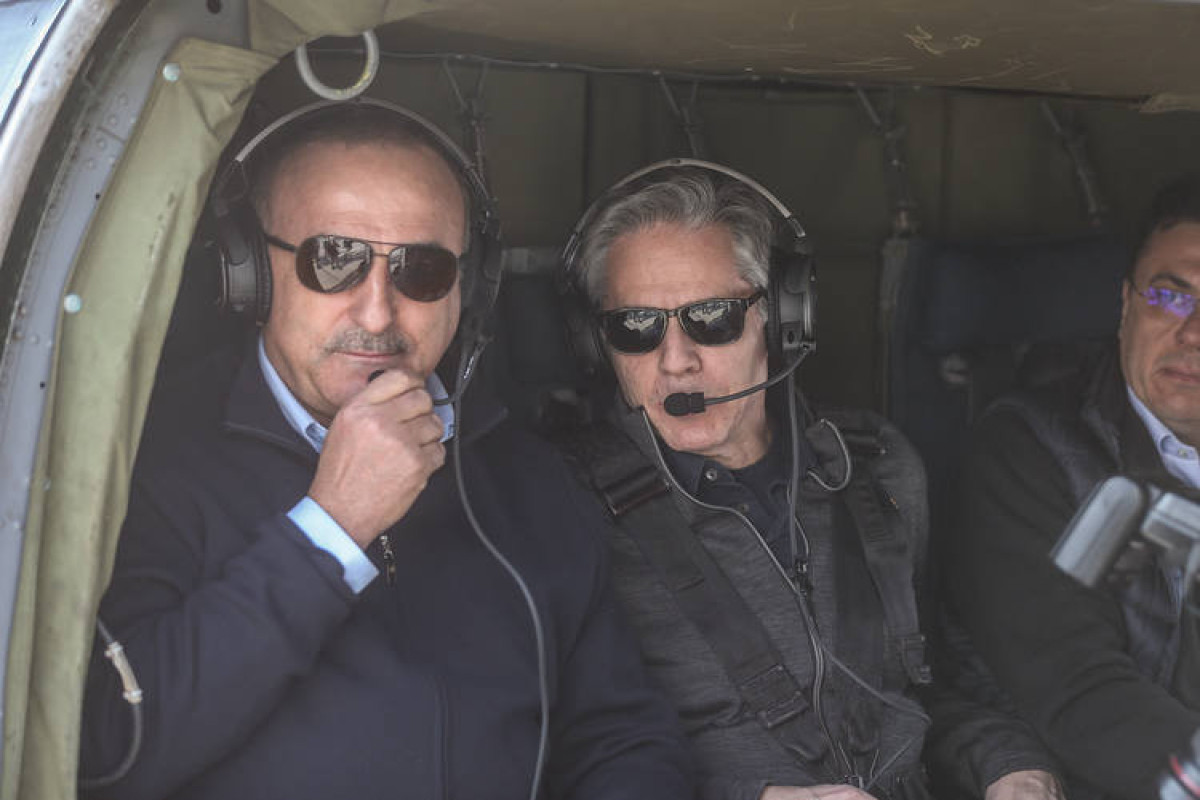 Чавушоглу менен Блинкен андан кийин Кургактык күчтөрү командирлигине таандык тик учак менен жер титирөө таасирдүү болгон Хатайга жол тартты.