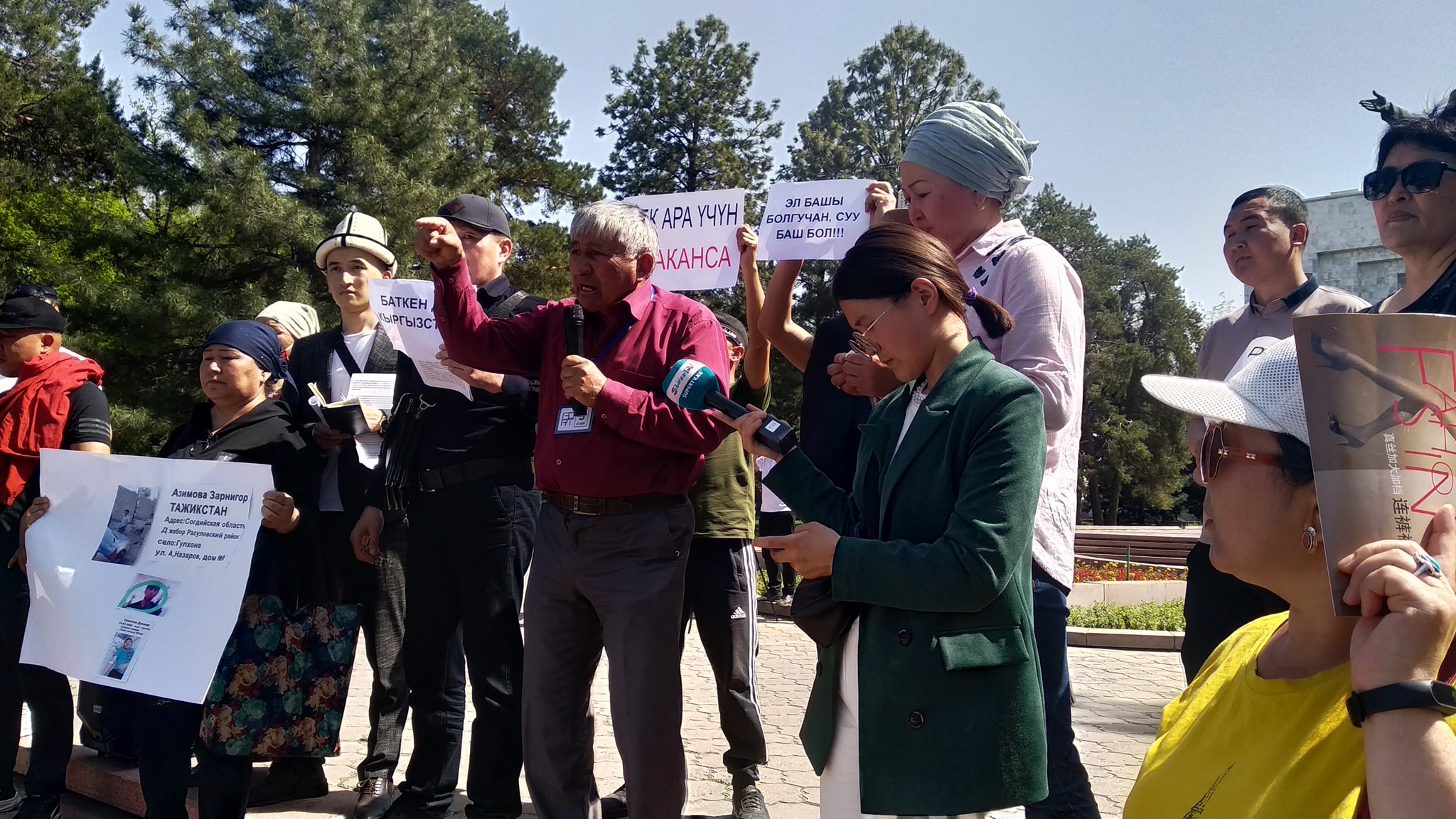 Бишкектеги өкмөт үйүнүн алдында ушул тапта ондогон активисттер Баткендеги чек ара маселесине байланыштуу митинг өткөрүп жатат. Алар кыргыз өкмөтүн жаңжал чыккан жерге барып, кырдаалды жөнгө салышын талап кылышууда.