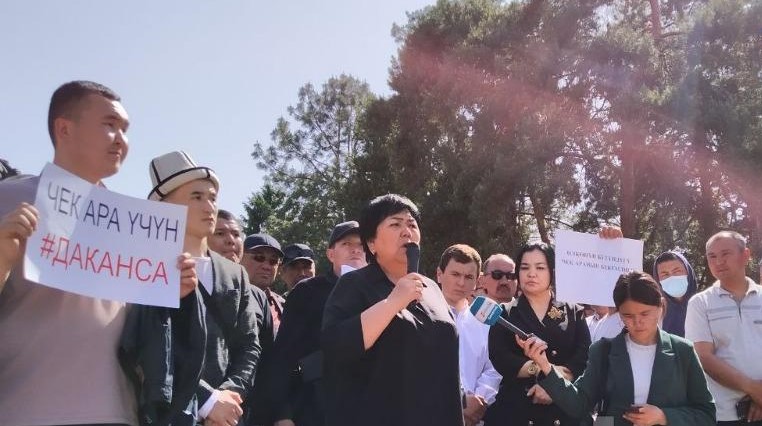 Өкмөт үйүнүн алдында митингге Жогорку Кеңештин депутаты Карамат Орозова дагы келип, сөз сүйлөдү. Анда ал бийлик өкүлдөрүн элди угушун суранды.