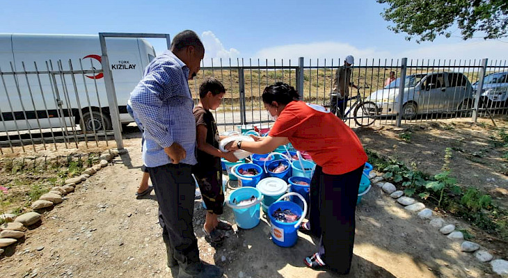 Гуманитардык жардам комплекти БУУнун облустагы калк фонду жана КР Улуттук Кызыл жарым ай коомунун Баткендеги филиалы биргеликте дардап, таратышты.