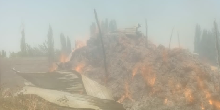 Сокулук районунун Асылбаш айылындагы Иманкулов көчөсүндөгү жайгашкан бастырмадагы чөп өрттөндү. Бул тууралуу ӨКМден билдиришти.