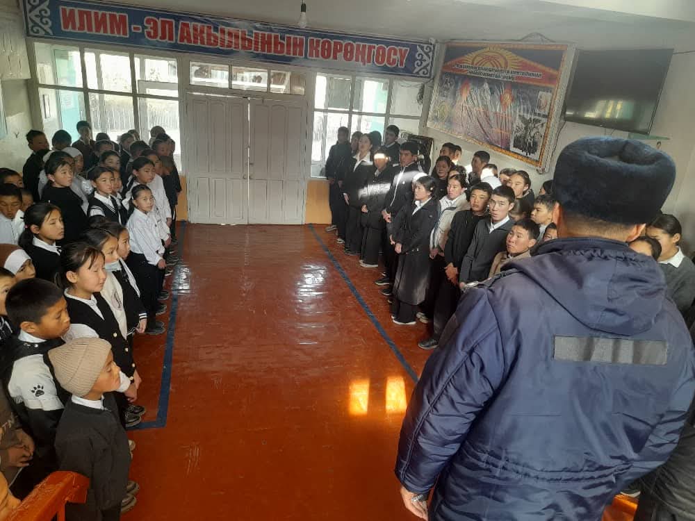 Анда милиция кызматкерлери окуучуларды бирин-бири урматтоого, убакытты туура пайдаланууга, сергек жашоого жана келечектин пай дубалын билим менен курууга үндөштү.