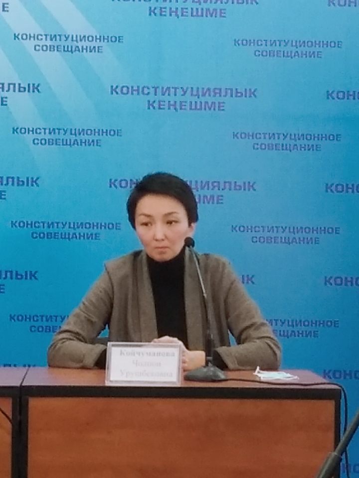 "Баш мыйзамдын жаңы редакциясында эч кандай узурпация жок, кеп президенттин жоопкерчилиги жөнүндө гана болуп жатат", - деп бүгүн, 27-ноябрда маалымат жыйында Конституциялык кеңешменин мүчөсү Чолпон Койчуманова билдирди.