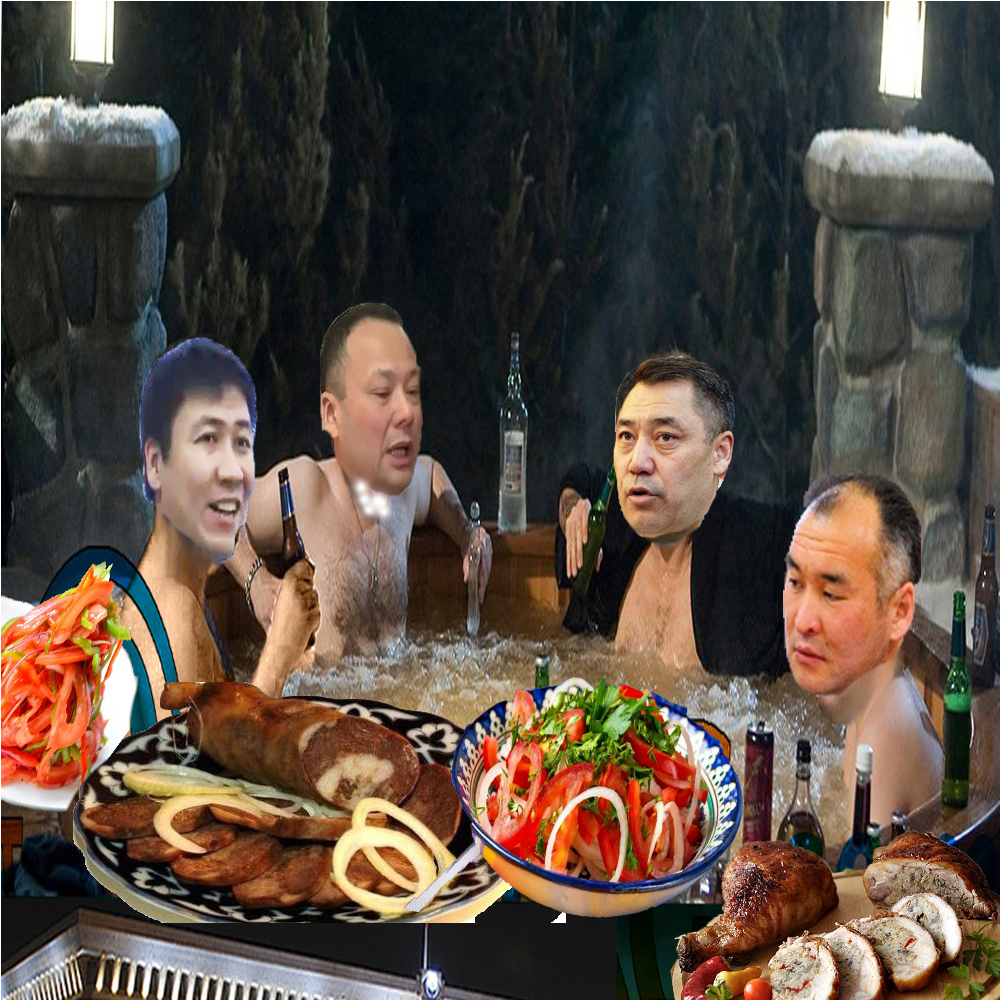 Москвада иш сапары менен жүргөн президент Садыр Жапаров «свиталары»: Тышкы иштер министри Руслан Казакбаев, билим берүү министри Алмазбек Бейшеналиев жана энергетика министри мурун пара менен соттолуп келген Кубанычбек Турдубаев менен улуттук ресторанга кирип калат. Жетип келген официант: