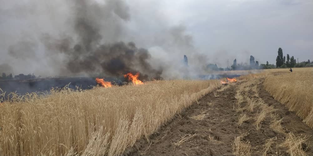 Маалыматка ылайык, Аламүдүн районунун Константиновка айылында 23-июнда кечке жуук башталган өрт арпа талаасын каптаган.