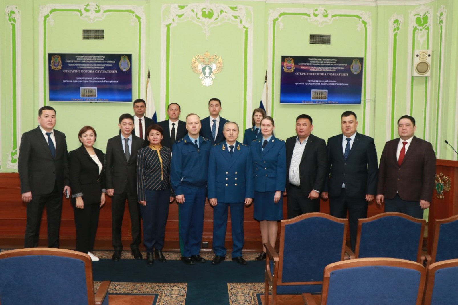 Кыргыз Республикасы менен Орусия Федерациясынын Башкы прокуратураларынын ортосунда жетишилген макулдашуунун алкагында, 2022-жылдын 12-апрелинен 26-апрелине чейин Кыргыз Республикасынын прокуратура органдарынын он кызматкери Россия Федерациясынын Прокуратура университетинин Санкт-Петербург юридикалык институтунда (филиалында) квалификациясын жогорулатуу программасынын алкагында окуудан өтүштү.