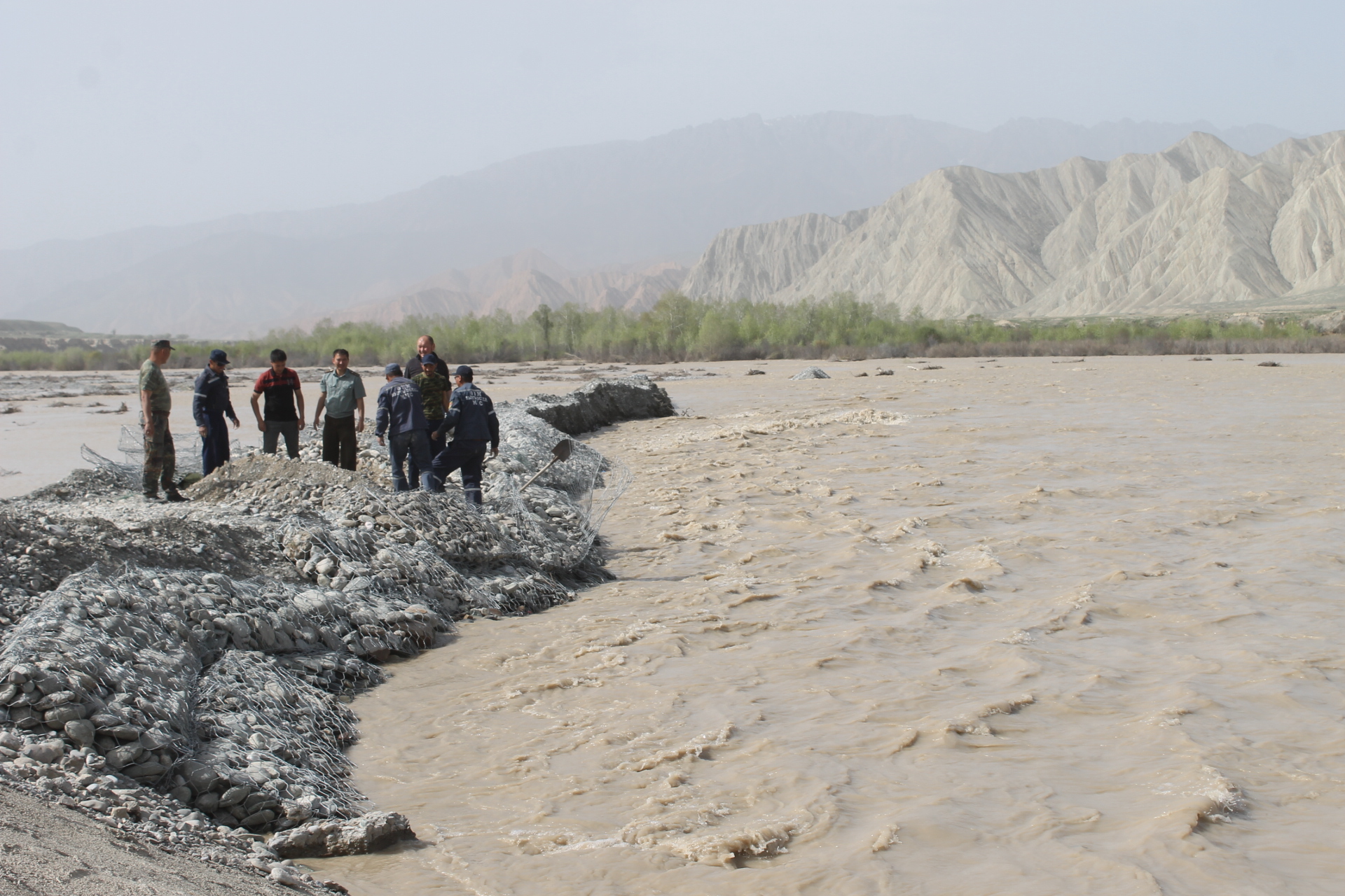 Суунун агымы адатта секундасына 35-45 м3 болсо, учурда секундасына 120-150 м3 түзүүдө. Ат-Башы суусунун жээктерин бекемдөө үчүн жарандык коргонуу комиссия мүчөлөрү жергиликтүү тургундар менен биргеликте иш алып барууда. «Кирпич заводу» участогунда жайгашкан 3 турак-жайга жана айдоо аянтына коркунуч жаралган. 18-апрелден баштап суунун нугун буруу иш-чарасы жүргүзүлүп, 11-майдан тарта 144 габион торчолору коюлган. Ал эми «Базар» участогунда Ат-Башы суусунун нугун буруу, дамба куруу иштери жүргүзүлгөн.
