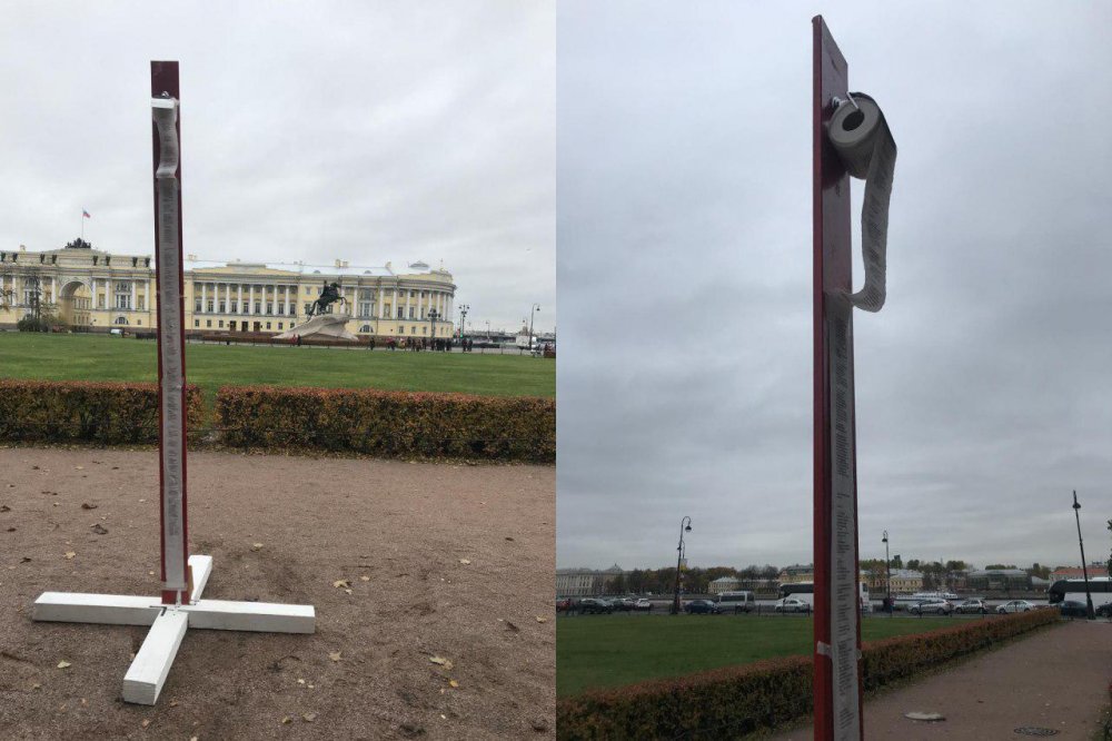 Тагыраагы, “Вконтакте” социалдык түйүнүнө чыккан бул жаңылыкта, кечээ, 17-октябрь күнү кечинде, бул даарат кагаз белгисиз бирөөлөр тарабынан ташталганы айтылат. Анда айтылгандай, даараткана кагазына эринбей бастырылган Орусиянын башкы мыйзамы Петербургдагы Конституциялык соттун маңдайында бир сааттан ашык илинип турган.