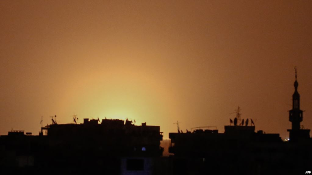 Көтөрүлүшчүлөр тобу аэропорт жайгашкан чыгыш Дамасктагы байкоочуларына шилтеме кылып билдиришкендей, Иран колдоп жаткан көтөрүлүшчүлөрдүн пайдалануусундагы курал-жарак сакталган кампага беш сокку урулган.