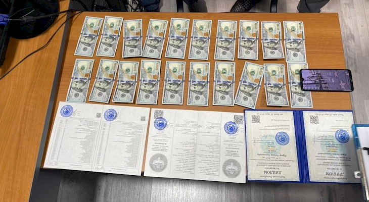 Кармалган адам Бишкектеги Б.Н. Ельцин атындагы Кыргыз-Орус Славян университетинин жогорку билими тууралуу жасалма дипломду пайдаланып, ага акт түзүп өз ыктыяры менен берүүсү аныкталган, бирок кылмыш жоопкерчилигинен кутулуу амалында текшерүүнү токтотуу жана фактыны жашыруу үчүн УКМК кызматкерине пара сунуштаган.