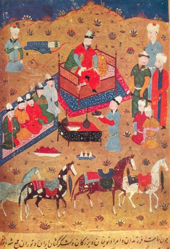 Төртүнчү сүрөт: Абага хандын такка олтурушу (Иран) 1265 – 1282 жылдар (сүрөткө түшүндүрмө 97- бетте).
