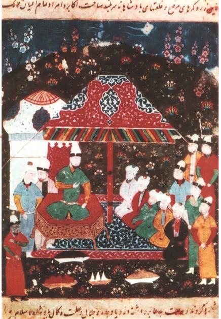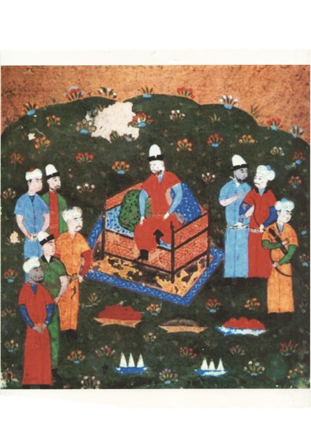Тогузунчу сүрөт: Осмон империясынын 1-падишахы Осмон Газы (1281-1299). Джулюс (тронная церемония) Стамбул шаарындагы Топ–Капы музейинде (сүрөткө түшүндүрмө 98- бетте).