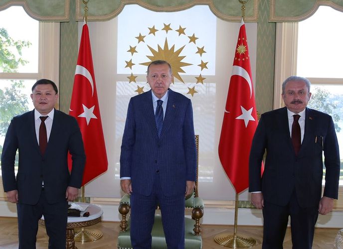 Жогорку Кеңештин төрагасы Дастанбек Жумабеков Стамбулдун чакыруусу боюнча Түркияга барып, түрк президенти менен жолугушту. Бул тууралуу түркиялык лидердин расмий сайтында маалымдалат.