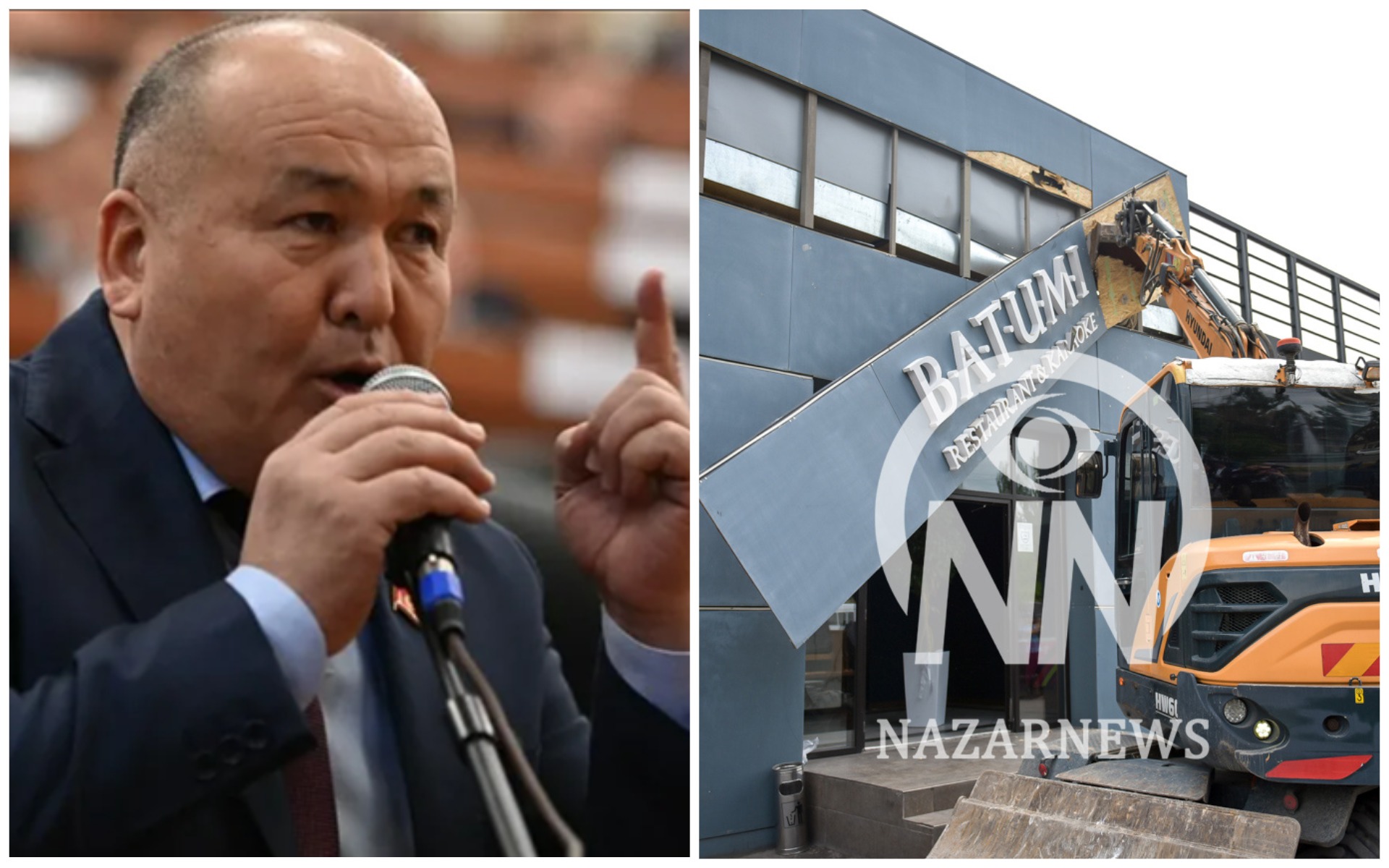 "Шашлычная №1" "Батумиден" 5 метр аралыкта жайгашканы. Эмне үчүн мындай адилетсиздик болуп жатат? Мыйзам алдында баарыбыз бирдейбиз. Эгер "Батуминин" ээси жакпаса, бузуп салса болот, бирок "Шашлычная №1" кафесинин ээлери жетекчилик менен жакшы мамиледе болсо, анда ага тийбейсиңерби? Ал жерде эл иштечү, салык төлөнчү, курулушка ушунча эмгек, акча кеткен. Мунун баары токтоду", - деди Токторбаев.