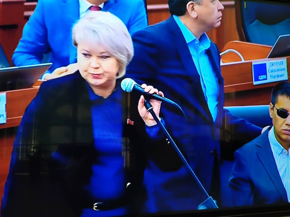 Андан соң, депутат Ирина Карамушкина «секирип» чыгып өзүн, "бессовестная", "бесстыжая" экенин дагы бир ирет ачыктады.