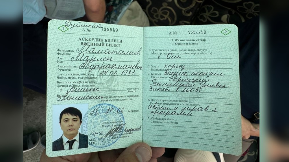 Мындан тышкары тинтүү учурунда бир катар жарандардын өздүк документтери табылып, алардын ичинде КР ЖК депутаты Марлен Маматалиевге таандык аскердик билет да табылды.