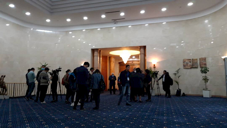 Учурда жыйындар залынан журналисттер жана Жогорку Кеңештин аппараты чыгарылып, депутаттар талкуу жүргүзүүдө.