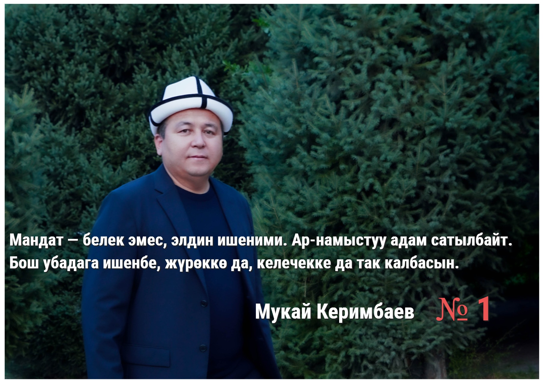 Буйрутма КР Жогорку Кеңешинин депутаттыгына № 15 көп мандаттуу Аксы шайлоо округунан талапкер Керимбаев Мураталы Топчубаевичтин шайлоо фондунан каржыланды.
