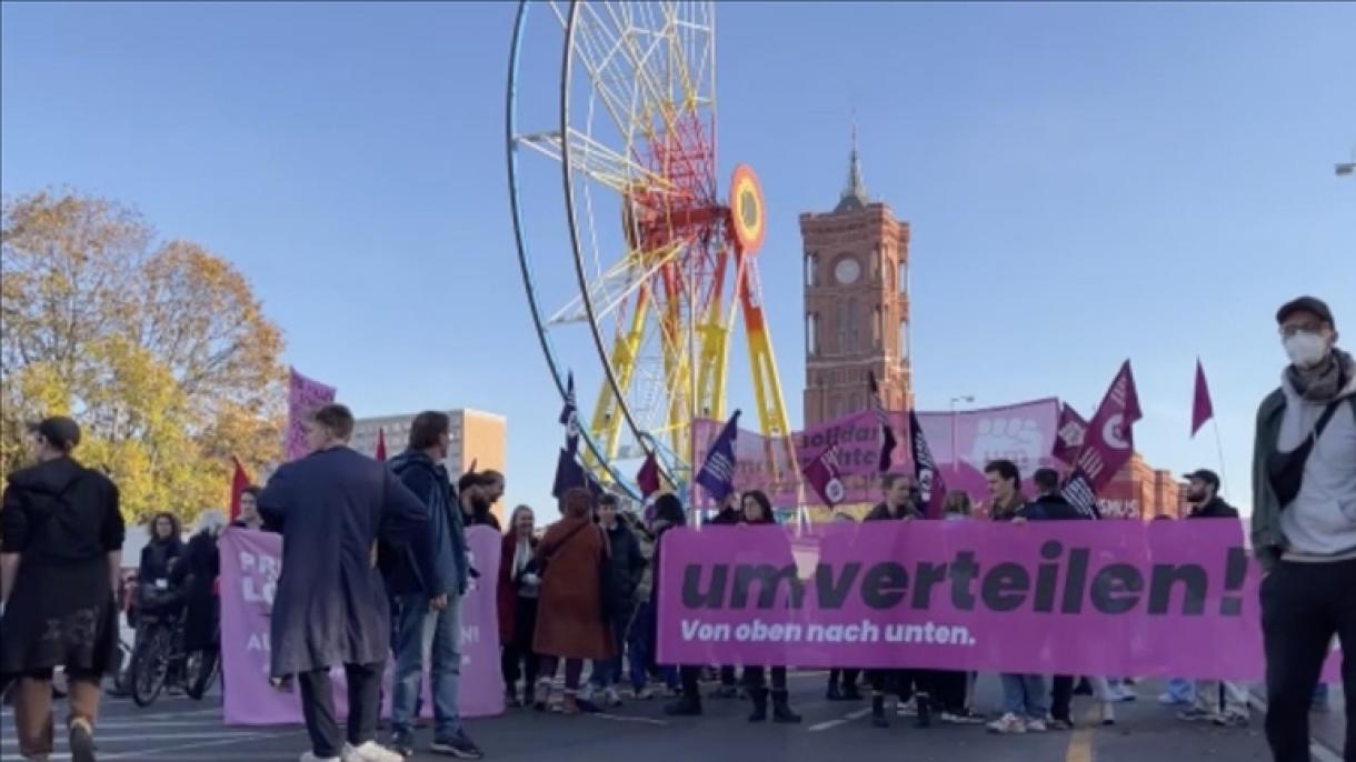 Берлинде "Кызыл сарай" деп аталган мэриянын алдына чогулган миңдеген адамдар электр энергиясына, жылуулукка жана ижара акысына жогорку чектөө киргизүүнү жана айлык акыны жогорулатууну талап кылышты.