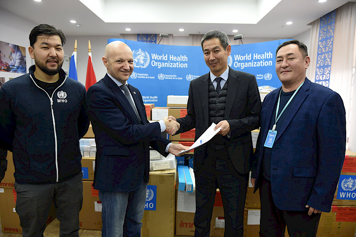 Дүйнөлүк саламаттыкты сактоо уюму Улуттук госпиталдын катастрофалык медицина жана шашылыш консультативдик медициналык жардам бөлүмүнө өзгөчө кырдаалдарда жана табигый кырсыктарда кечиктирилгис медициналык жардам көрсөтүү үчүн комплекттерди акысыз тапшырды.